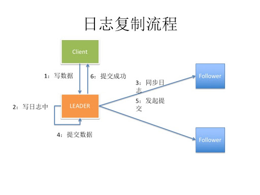 - Leader在时,数据写入只能通过leader,由Leader向Follower同步日志