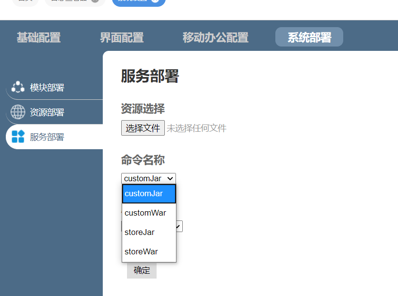 (customJar对应自定义java的jar包,customWar对应自定义java的war包,storeJar对应平台java的jar包,storeWar对应平台java的War包),如上图所示;