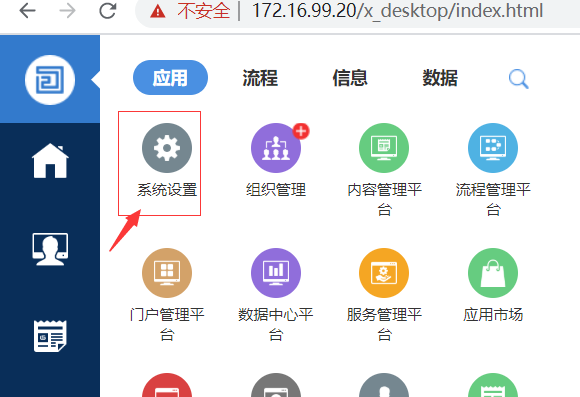 第一:管理员通过浏览器登入系统后,点击应用中的“系统设置”图标。