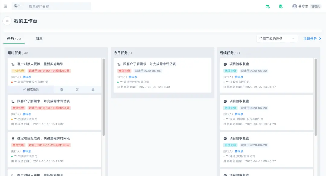 而且,在面对众多繁杂的事务问题,客户成功很难做到事无遗漏。在神策客景中的工作台——任务模块中,可清楚了解哪些复杂的疑难问题当天未解决,哪些问题被遗忘。不需要等待客户发问,客户成功本人就可以主动去联系客户,跟进处理情况。