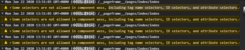 Some selectors are not allowed in component wxss, including tag name selectors.. Reve2333 2020-06-22 2,189 阅读1分钟 在开发者工具中调试,总是报这样的警告:“组件的wxss文件中禁止使用 标签名选择器,id选择器和属性选择器” 查看官方文档后发现:在自定义组件中,不能使用标签名选择器、id选择器、属性选择器,最好使用class选择器