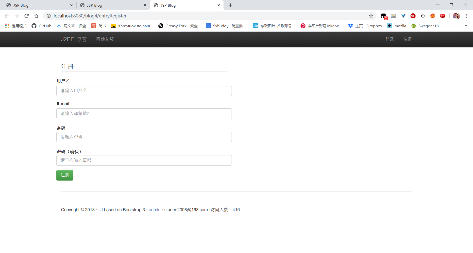 用户注册、登录、登出、开通博客、网站博客分类、博文排行、活跃博主排行、站内搜索、分页、评论、编辑个人信息、修改密码、编辑博客信息、博文管理、分类管理、评论管理,发布文章等