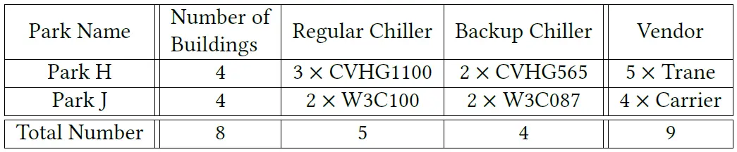 图8 2个大型工业园区中的8座建筑物及其冷机信息