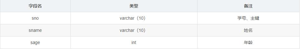表名:student、使用的为mysql数据库