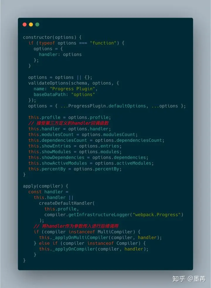ProgressPlugin定义了handler函数来作为回调函数切入,代码如下所示: