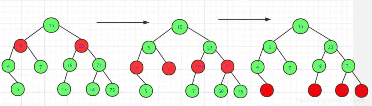 - 左右2数组分别重复上面的过程,知道子数组长度为1.