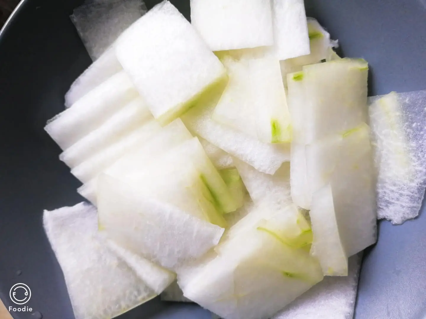 冬瓜去皮去囊切片,海带剪短点备用。起锅放一点点油,把冬瓜稍微煎一下,让他有油香,不然感觉寡淡无味不好吃。然后倒入凉水,让他慢慢烧。等水烧开了,放入海带。再放点盐和白胡椒粉调味。我对白胡椒粉有谜一样的执着,盐可以不放,但是白胡椒粉一定要放😄。