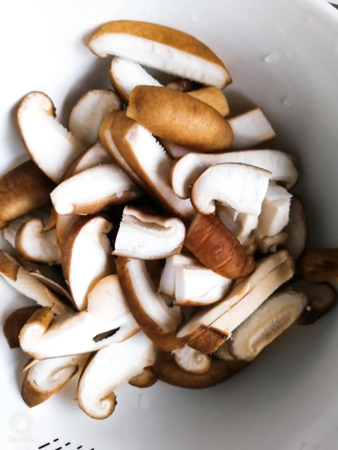 鲜香菇洗干净,切成片备用。