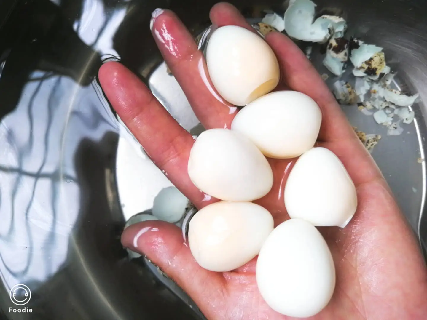 家里有鹌鹑蛋,所以就顺便一起烧了。鹌鹑蛋先拿水烧开,让他里面固定。再用凉水冲,然后慢慢把壳剥掉。不得不说,这是个细致的活,不能使太大劲,不然就弄破蛋白了。