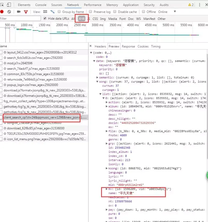 1.爬取 QQ 音乐比爬取豆瓣等网站稍难,所需信息不在网页源代码,需查看 XHR;