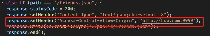 正常情况下,在qq.com:8888里运行js可以访问到json数据,访问huo.com:9999运行js不能访问,因为浏览器需要CORS