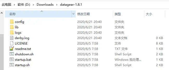 1.解压后,将产生一个名为datagear-*的安装包,解压后文件目录如下: