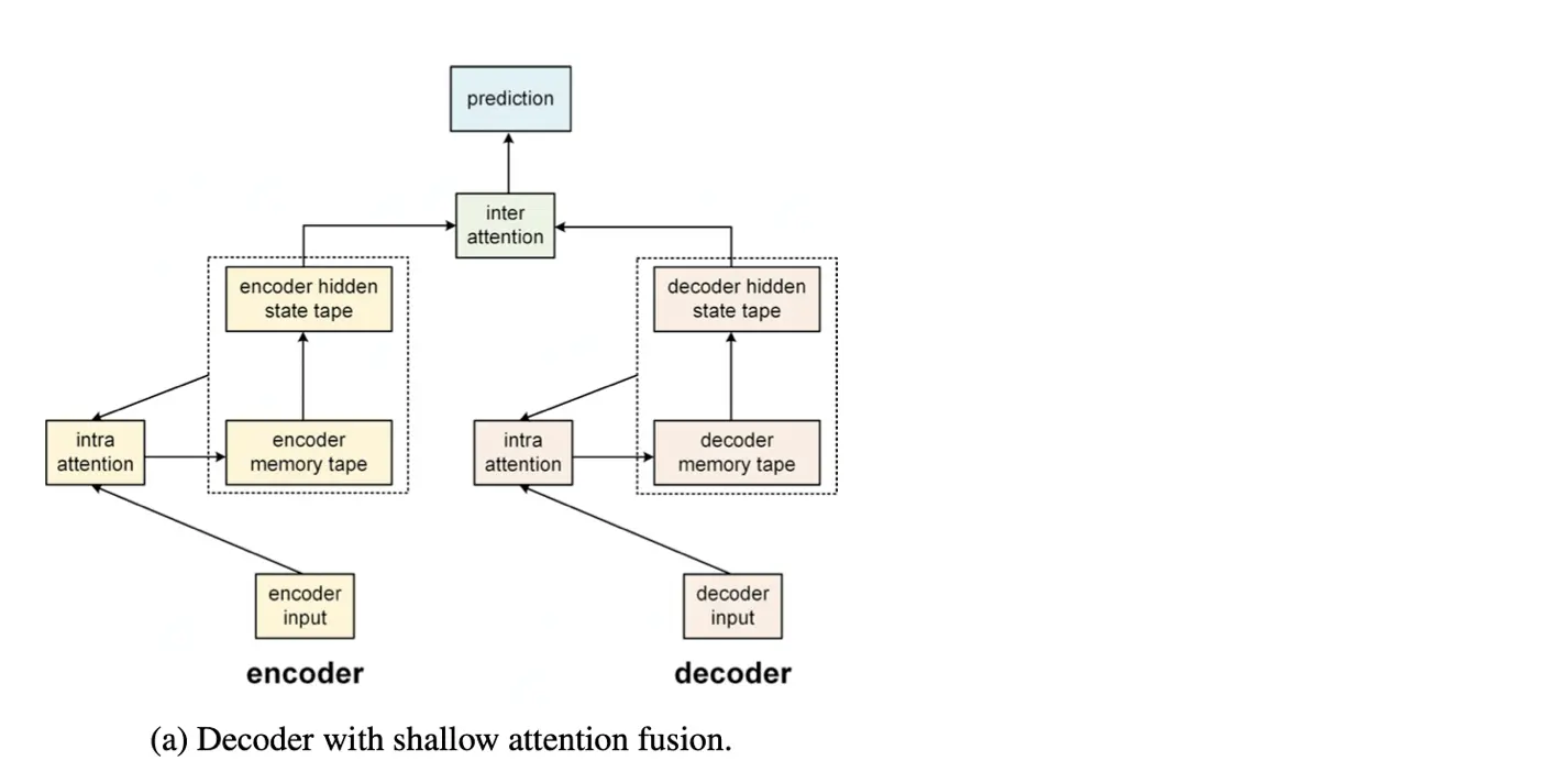 提出了Long Short-Term Memory-Network(LSTMN)。在原来LSTM的基础上增加了一个memory/hideen tape ,和描述词与词之间的相关程度的attention。 本文主要在机器阅读领域实验,进一步扩展到了翻译、自然语言处理。