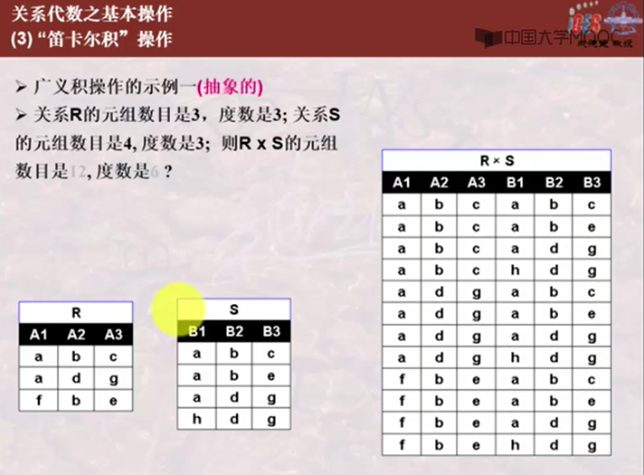 从在两个关系R,S的笛卡尔积中选与另一个关系B里相同属性组,也就是笛卡尔积里面一定有某些元组和B一样的