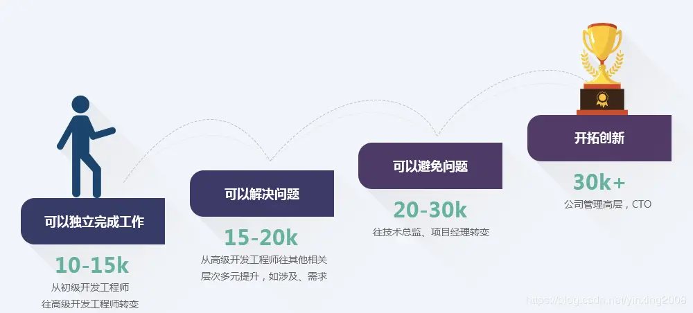 - 在技术纯熟后,往技术管理发展,最终成为CTO/CEO,也不是不无可能.