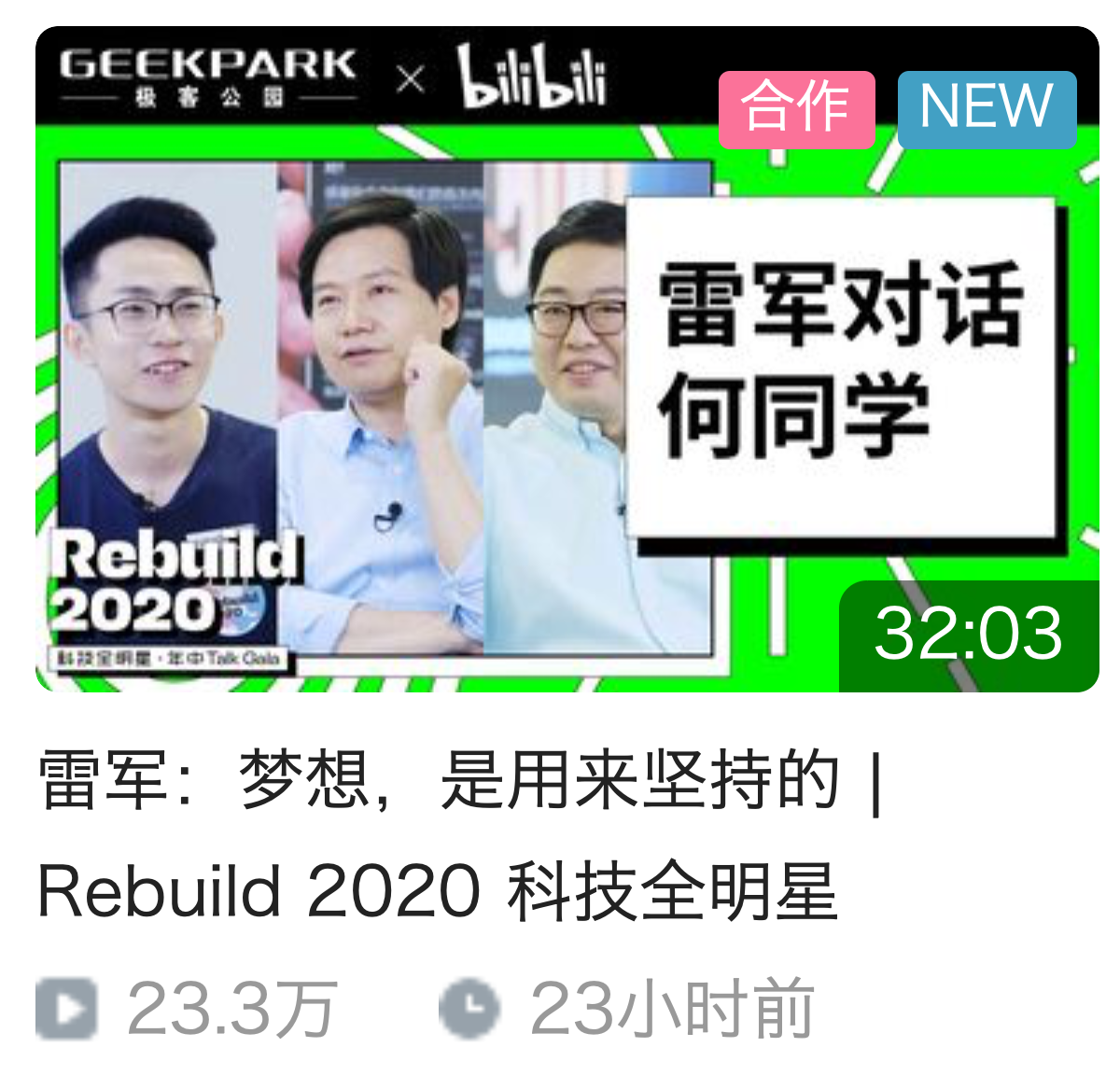 不知道小伙伴们有没有看之前B站的 「Rebuild 2020 科技全明星对话」 的节目,我认真看了一下 「雷军对话何同学」 那一期: