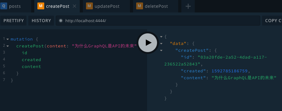 而创建博文是一个写操作,所以用 Mutation。