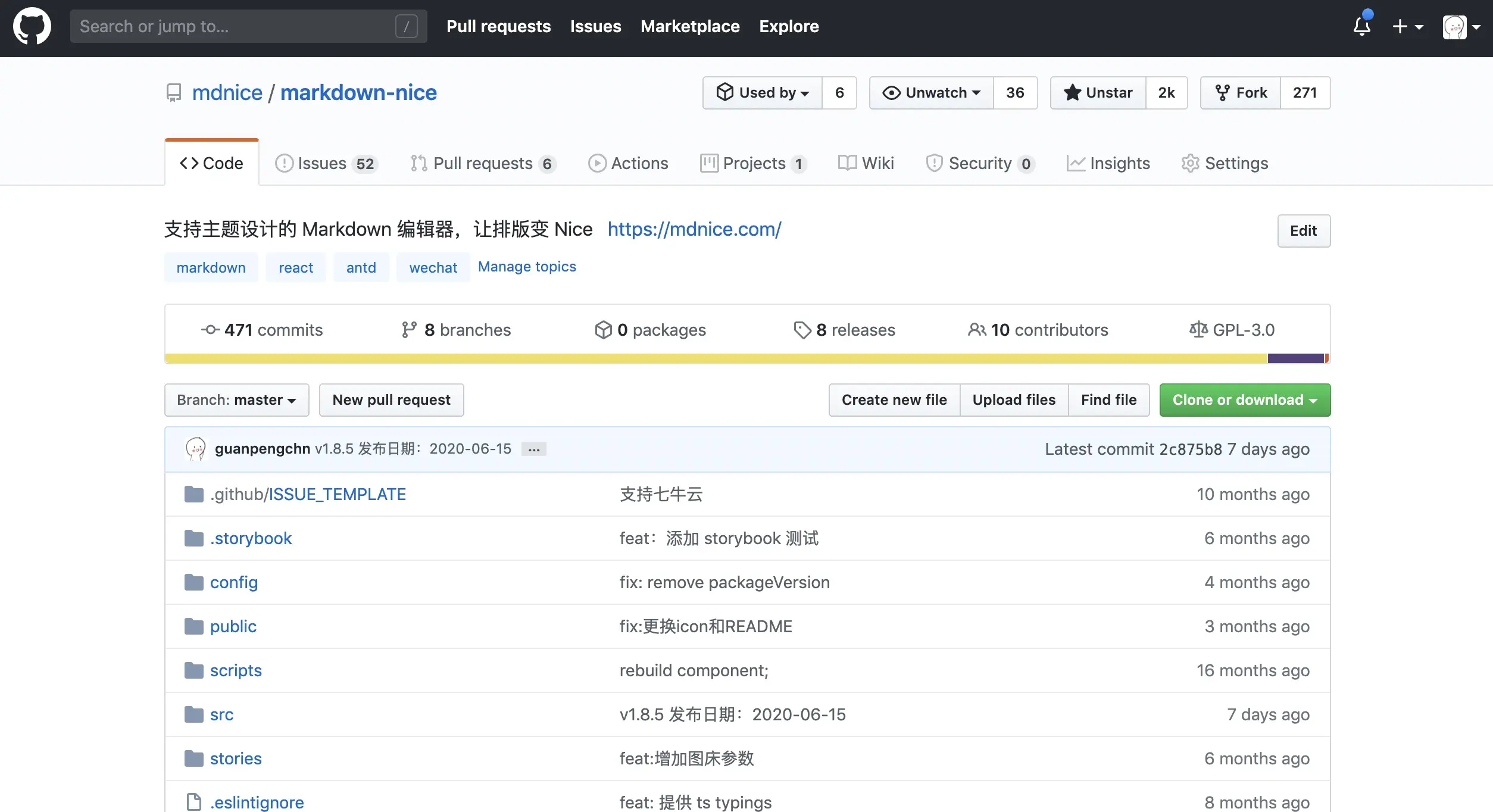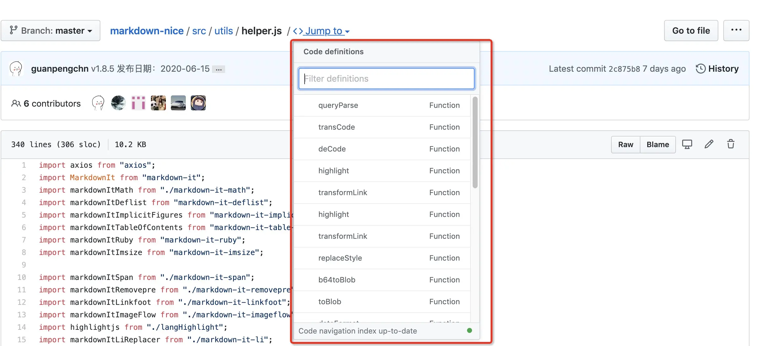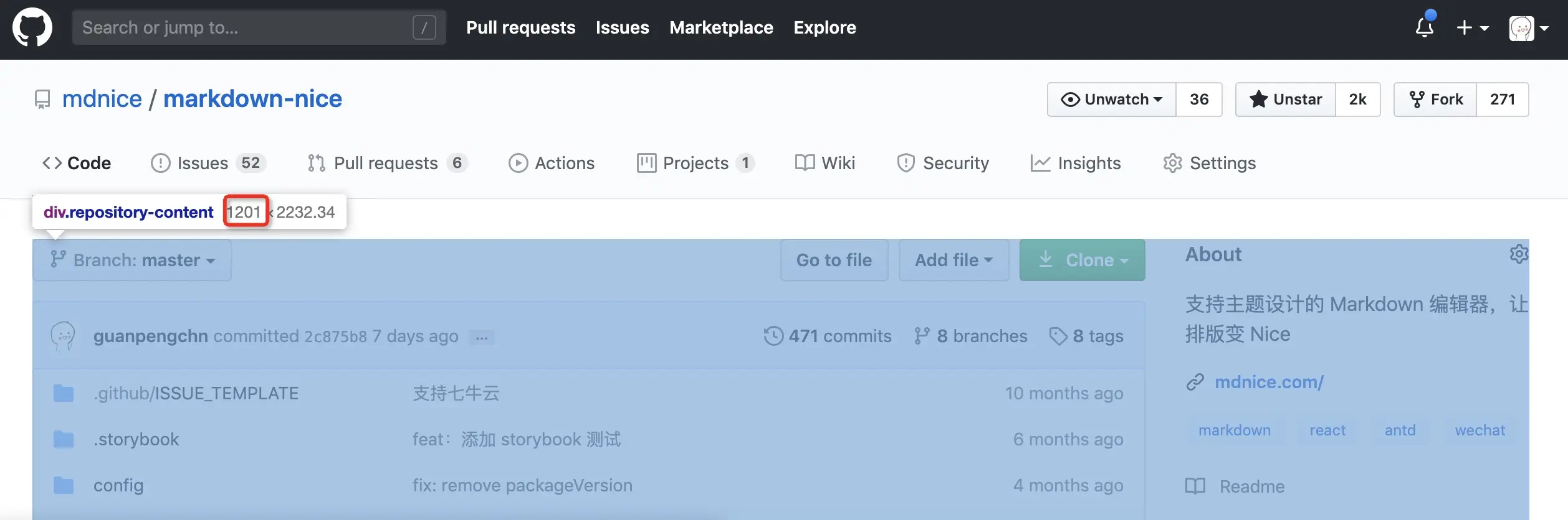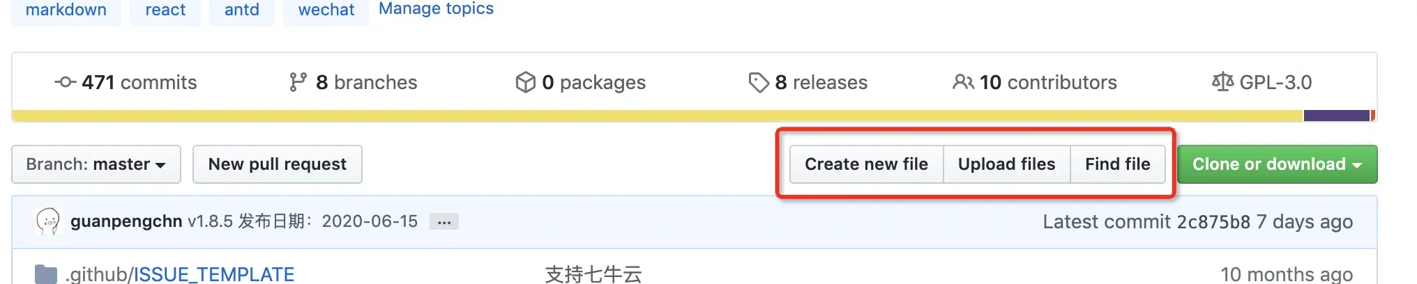 - 上方不再有 Used By 信息,这个不确定是不是 GitHub 不小心漏掉了