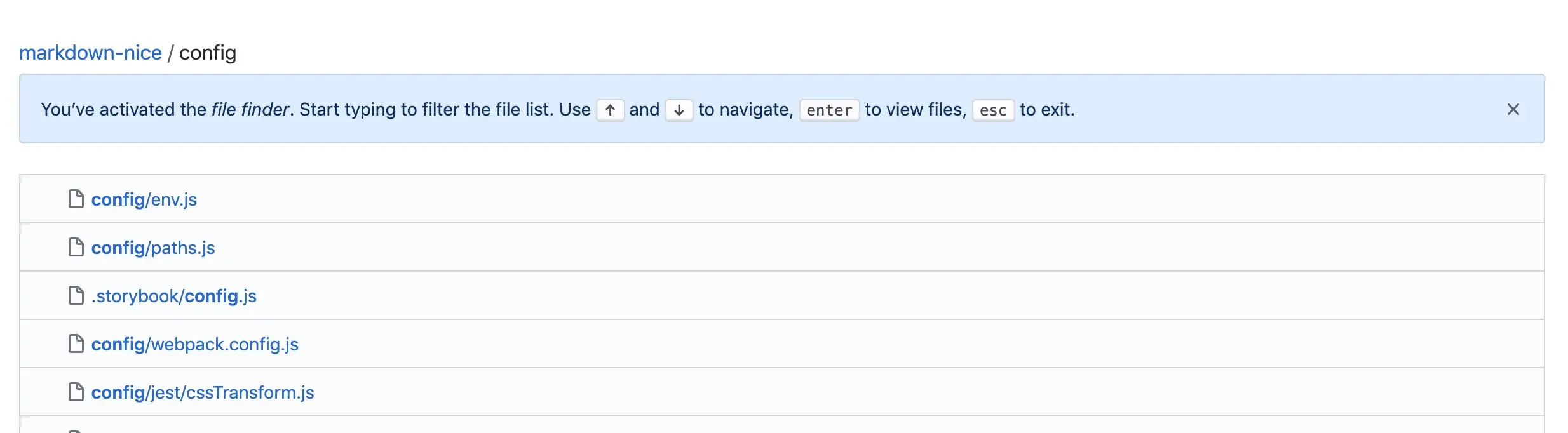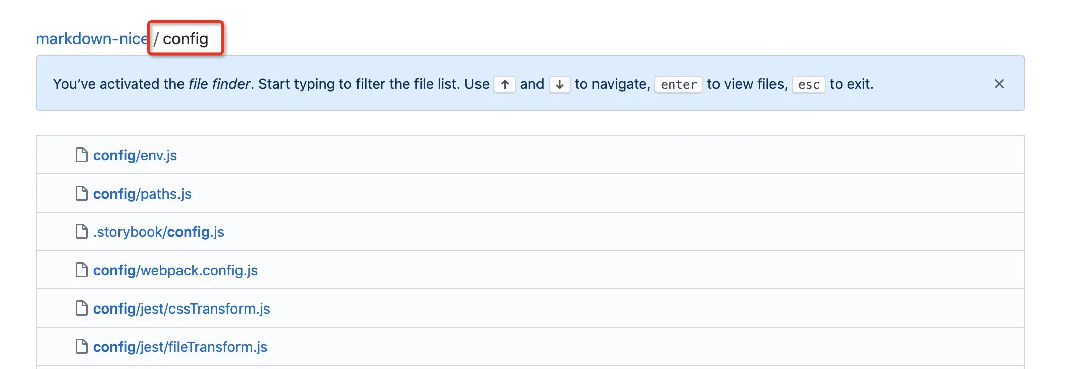 点击 Go to file 之后即可进行文件查找,比如下图中搜索 config