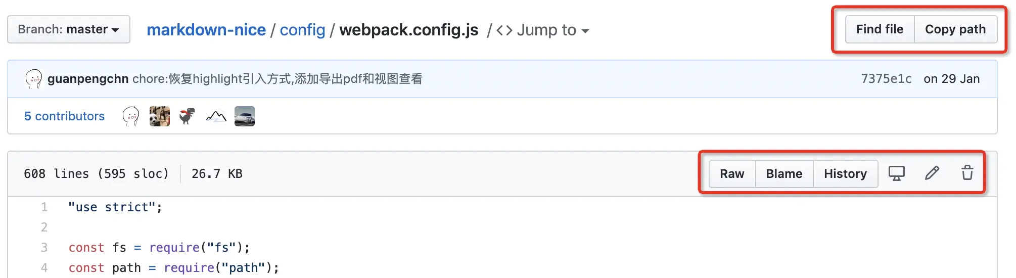 点击 Find file 之后即可进行文件查找,比如下图中搜索 config