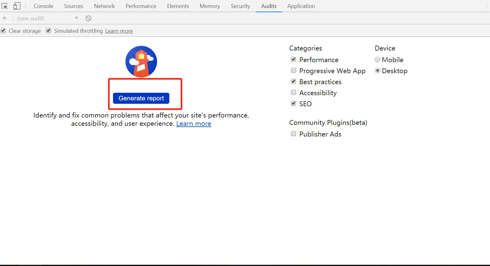 Chrome 60 开始,DevTools 中直接加入了基于 LightHouse 的 Audits 面板: