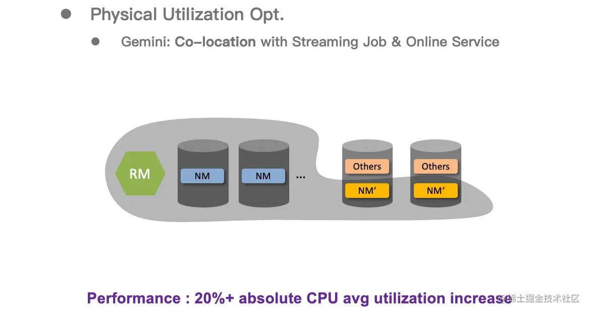 目前生产环境中已有数万台节点进行了混部,混部后将原机器的 CPU 利用率绝对值提升了 20%以上。