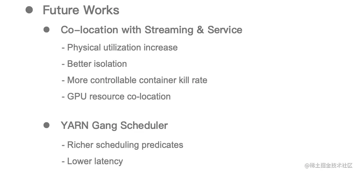 同时,我们也会继续完善 YARN Gang Scheduler,包括: