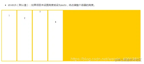 单个项目有与其他项目不一样的对齐方式,可覆盖align-items属性。默认值为auto,表示继承父元素的align-items属性,如果没有父元素,则等同于stretch