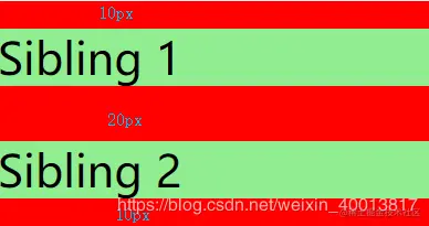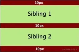 margin重叠,仅仅是垂直方向,左右不是这个样子的),会发生外边距合并,指的是当两个垂直外边距相遇时,它们将形成一个外边距。合并后的外边距的高度等于两个发生合并的外边距的高度中的较大者。