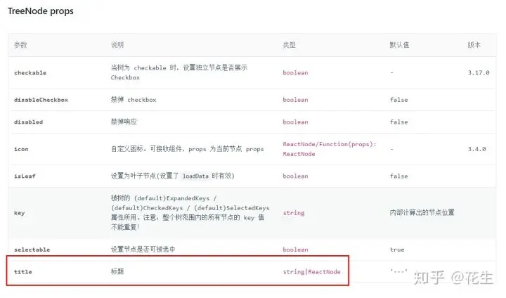 还有一个非常常见的需求就是将左侧拖拽区改造成树状结构,我看网上有不少人问,这里我贴一下我的解决方案。我去翻了一下antd的文档,发现树节点的标题是接受组件传入的: