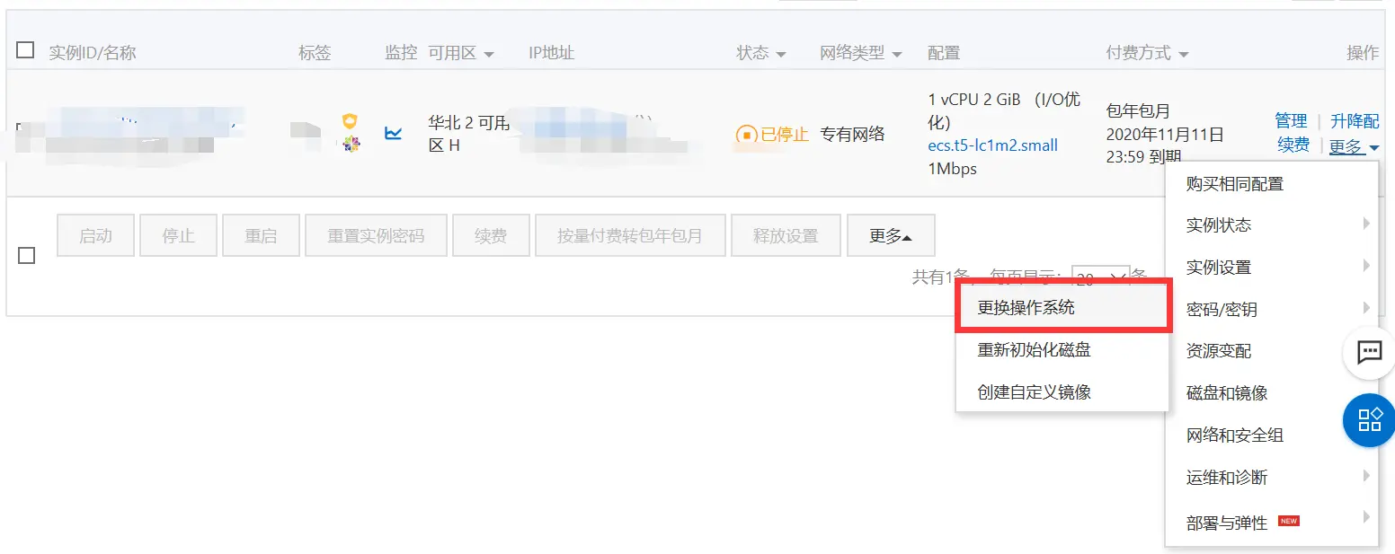 先停止实例状态