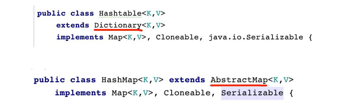 AbstractMap类,而 HashTable 继承了Dictionary类