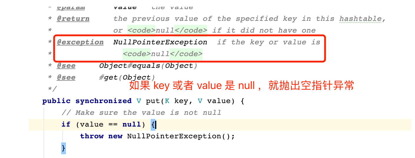 空值不同:HashMap 允许空的 key 和 value 值,HashTable 不允许空的 key 和 value 值。HashMap 会把 Null key 当做普通的 key 对待。不允许 null key 重复。