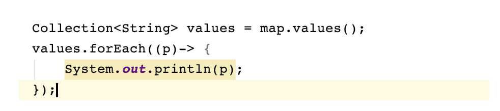 Values 类的创建其实是和 KeySet 类很相似,不过 KeySet 旨在对 Map中的键进行操作,Values 旨在对key-value 键值对中的 value 值进行使用,看一下代码示例: