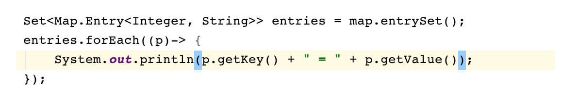 // 返回一个 set 视图,此视图包含了 map 中的key-value 键值对