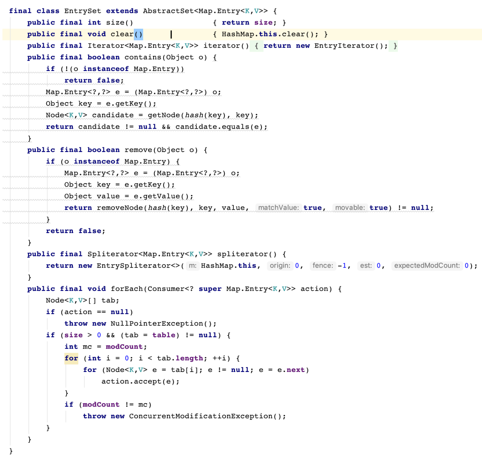 点进去 entrySet() 会发现这个方法也是在 Map 接口中定义的,HashMap对它进行了重写