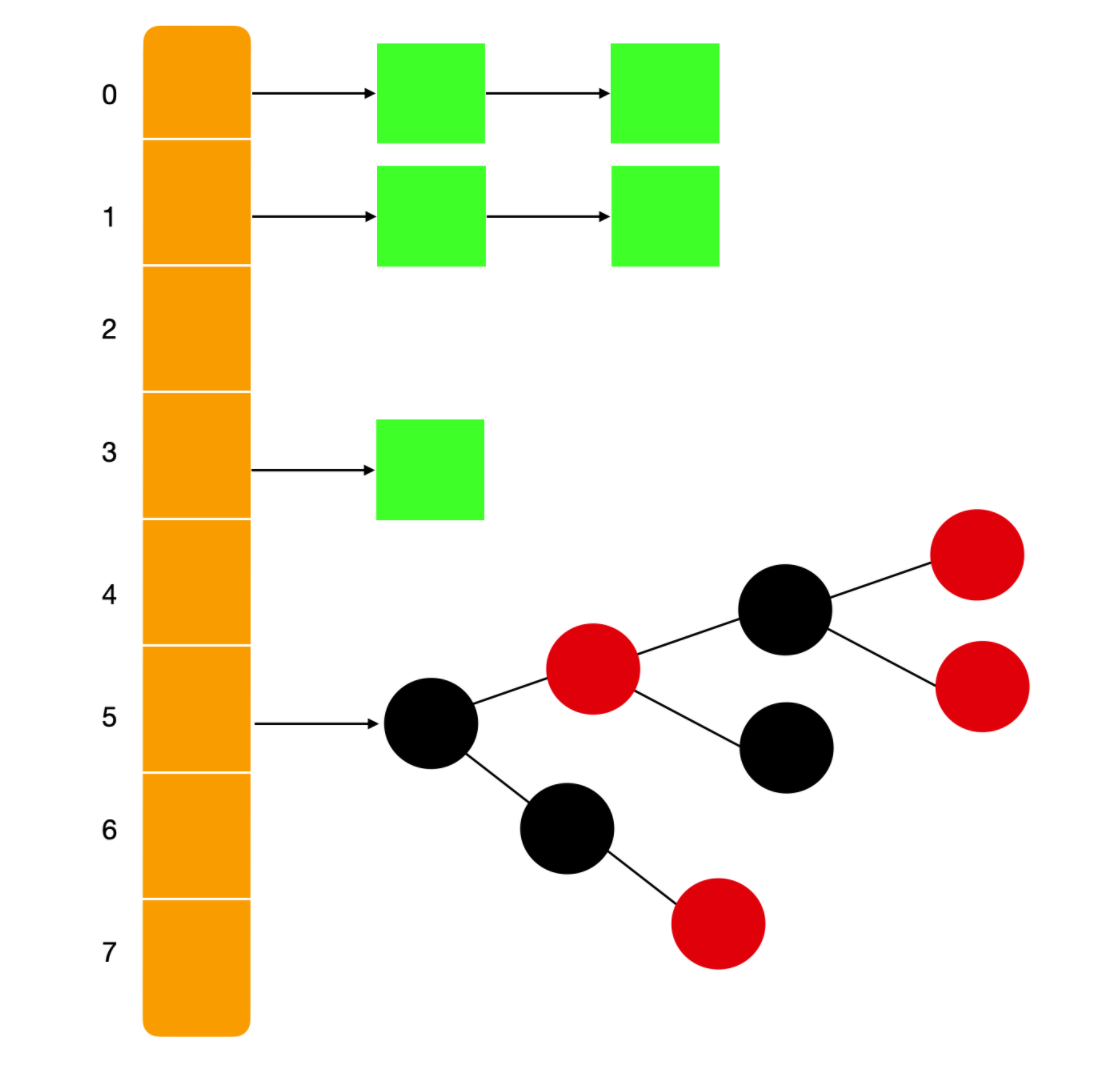 所以,与 JDK 1.7 相比,JDK 1.8 在底层结构方面做了一些改变,当每个桶中元素大于 8 的时候,会转变为红黑树,目的就是优化查询效率。