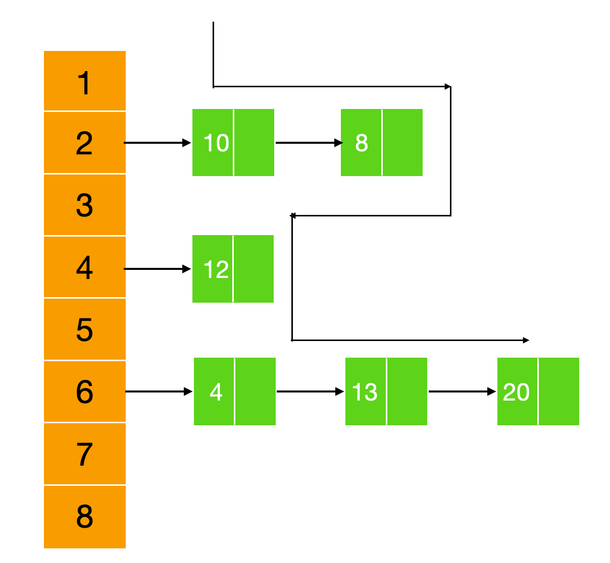 next 和 current 分别表示下一个 Node 节点和当前的 Node 节点,HashIterator 在初始化时会遍历所有的节点。下面我们用图来表示一下他们的遍历顺序