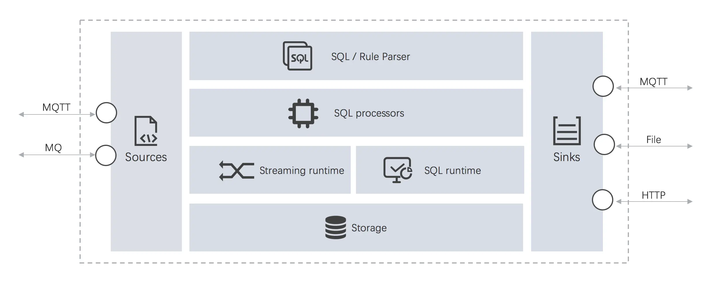 EMQ X Kuiper 是 Golang 实现的轻量级物联网边缘分析、流式处理开源软件,可以运行在各类资源受限的边缘设备上。Kuiper 设计的一个主要目标就是将在云端运行的实时流式计算框架(比如 Apache Spark,Apache Storm 和 Apache Flink 等)迁移到边缘端。Kuiper 参考了上述云端流式处理项目的架构与实现,结合边缘流式数据处理的特点,采用了编写基于源 (Source),SQL (业务逻辑处理), 目标 (Sink) 的规则引擎来实现边缘端的流式数据处理。