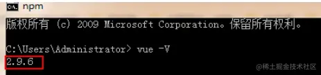 1 查看vue版本是 vue -V