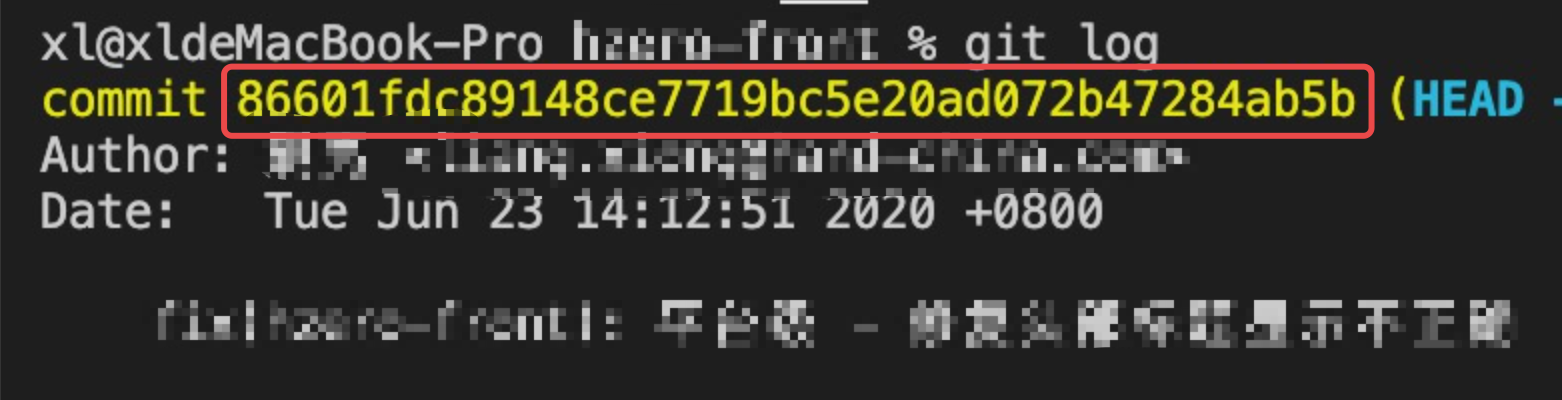 // 在feature分支commit之后,终端输入git log,查看本地提交的commitHash