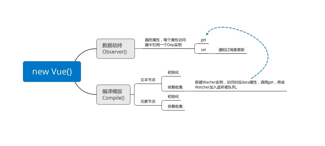 Vue初始化分为数据劫持和模版编译两部分