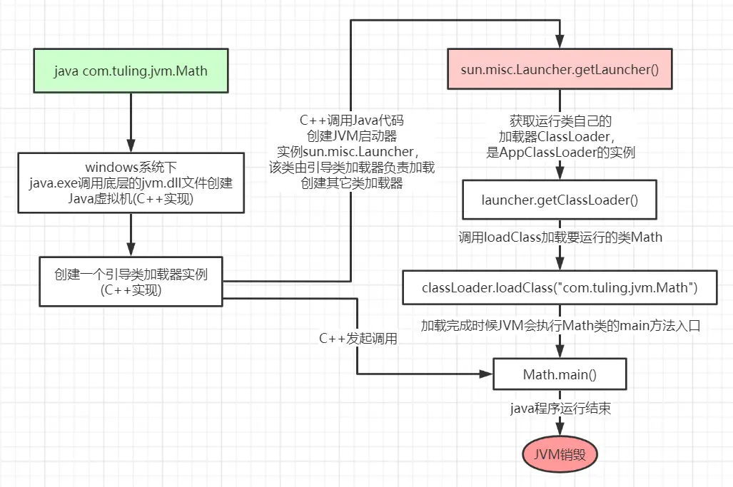 当我们用java命令运行某个类的main函数启动程序时,首先需要通过类加载器把主类加载到JVM。