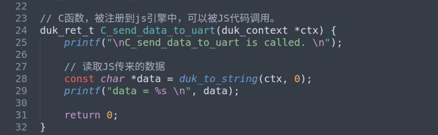 在JS程序中,如果有些操作无法处理(例如:发送数据给串口),那么就调用C程序中的函数来处理。