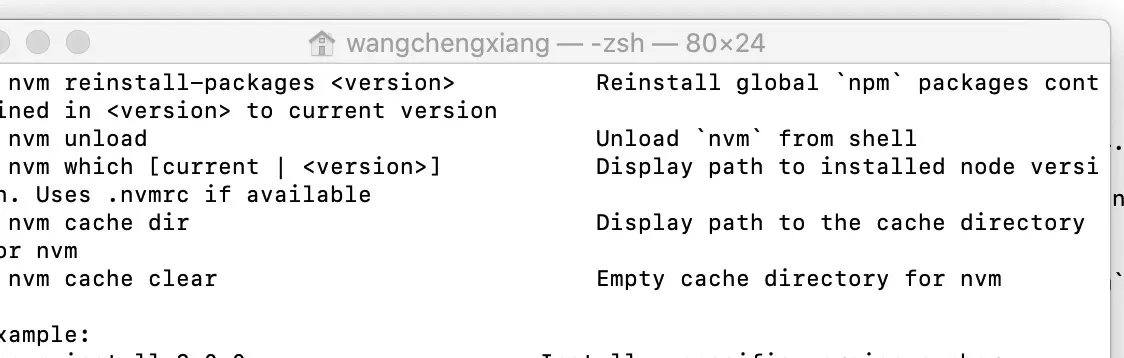 然后你在终端,输入nvm就发现好使了,再打开一个终端也是好使的。如果发现没生效,可以通过下面的命令生效下,反正我是直接生效的