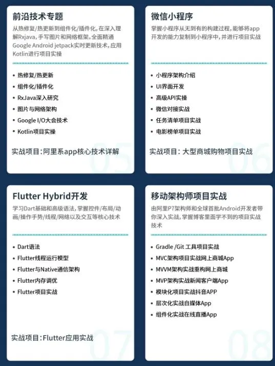 小明经过一年的努力学习终于成为Android中级工程师了,月薪变成了17k。到了中级工程师,已经可以在公司里干很多体力活了,但是一些很重要的任务小明还不能一个人承担起来,这个时候小明需要学习的内容就很多了,如下所示: