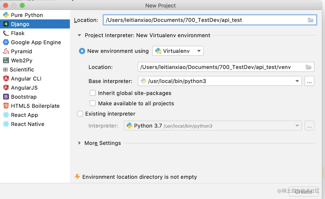 选择django框架+虚拟环境
