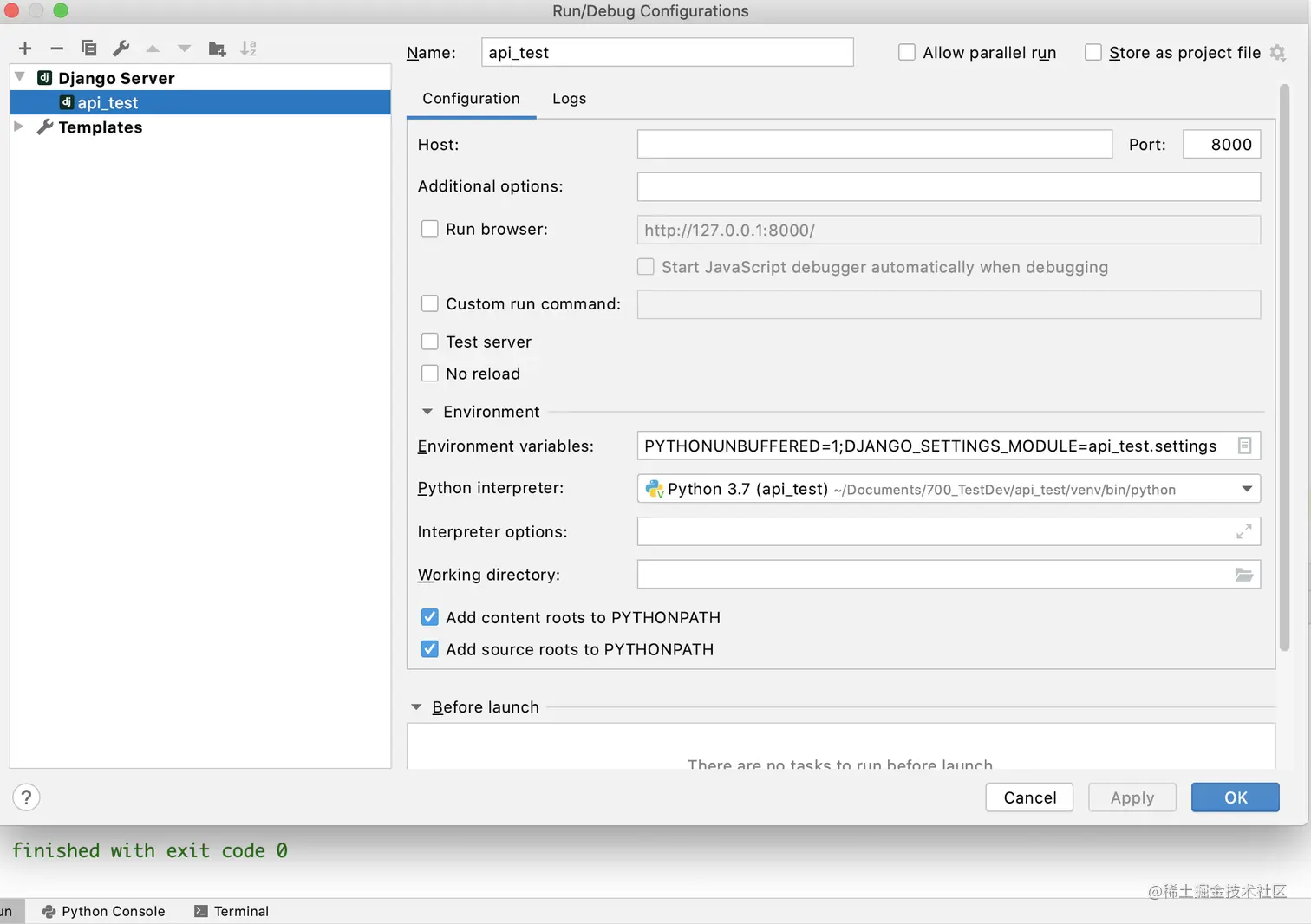 Django 项目环境终端