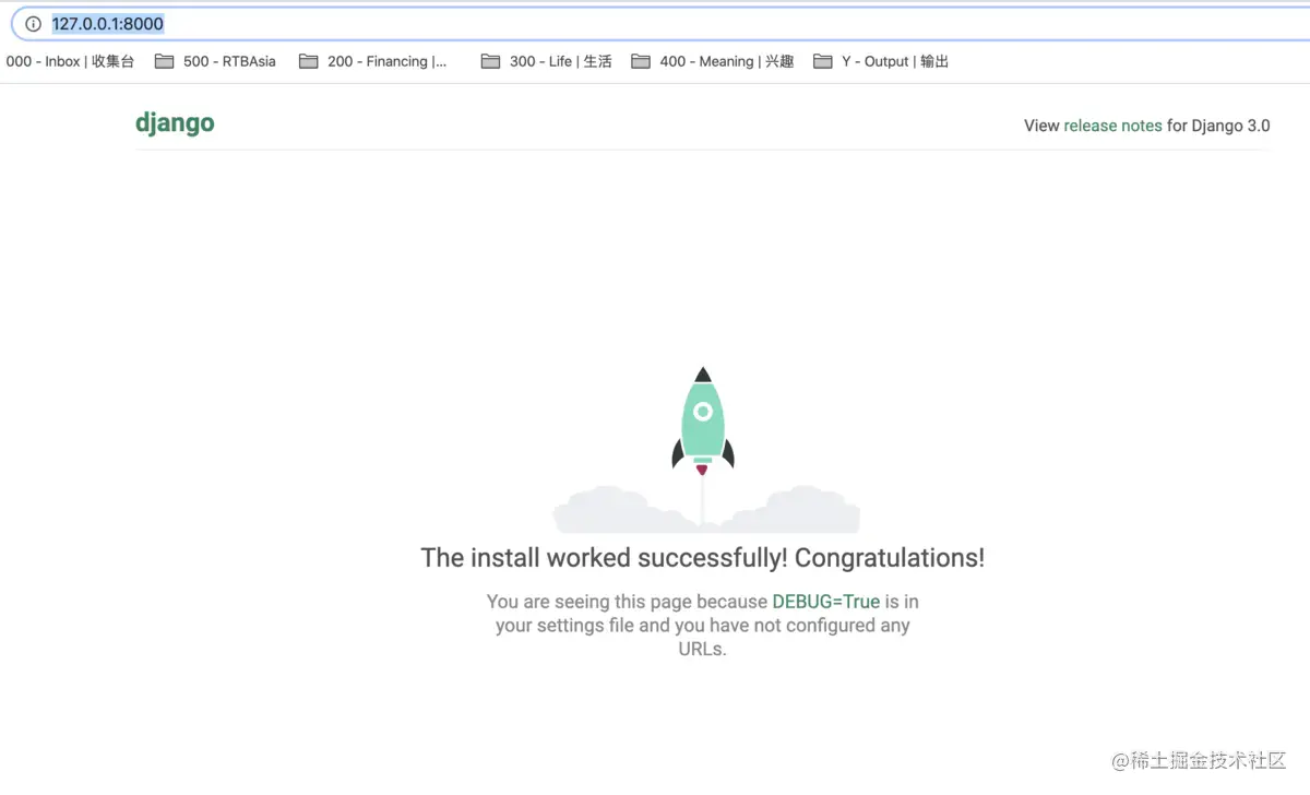 访问127.0.0.1:8000,表示环境搭建成功