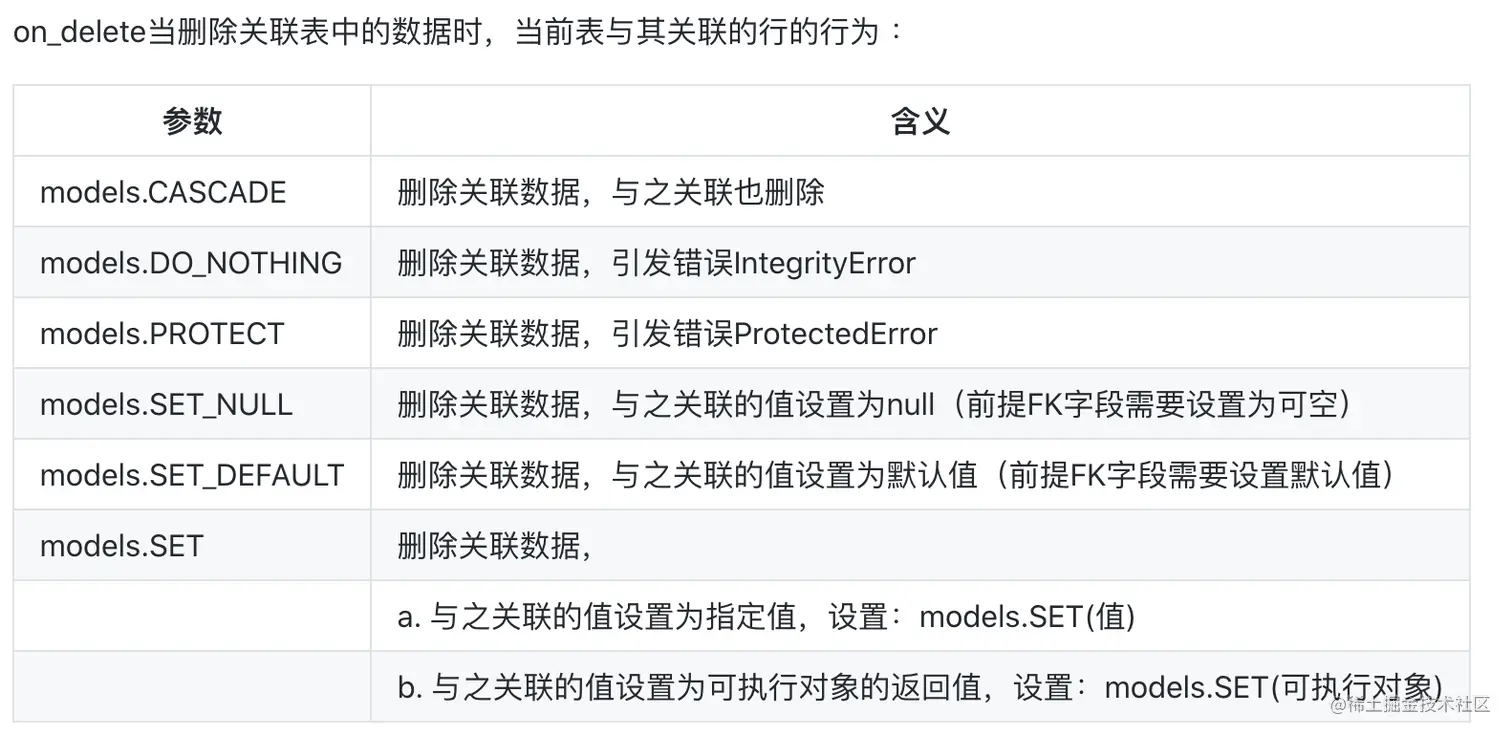 on_delete:当关联字段删除时,s_id的值设置成什么,常用设置为models.CASCADE,表示当关联字段删除时,它也删除